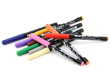 Jacquard Tee Juice Markers are great on t-shirts, jeans, canvas tennis shoes -- you name it! The colour screams, but the finished fabric still feels soft to the touch. For washability heat set with a dry iron. Available in fine, medium and broad tip.
