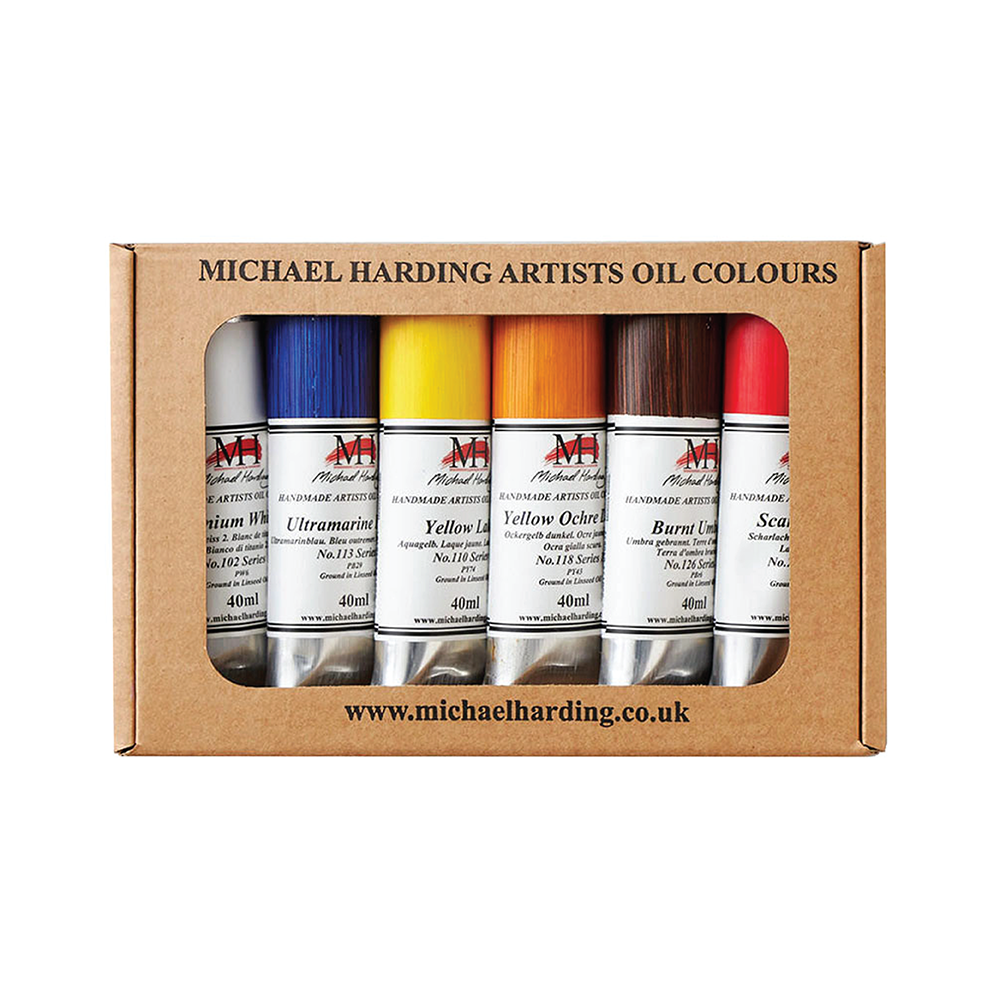Begin your journey with Michael Harding's Professional Oil Paints with this Introductory Oil Set of 6. This set is a versatile collection, perfect for experimenting and mixing a wide range of colours.
